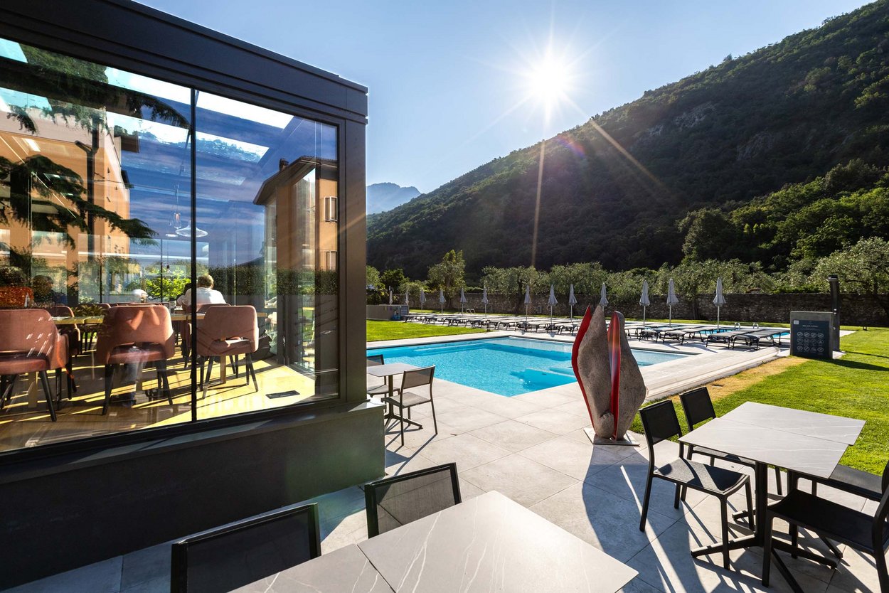 Das AktivHotel SantaLucia ist das einzige Hotel am Gardasee, das einen 25 Meter langen und beheizten Sportpool bietet. Dieser ist besonders bei leidenschaftlichen und professionellen Schwimmern, aber auch bei Triathleten sehr beliebt. Doch es bietet nicht nur sportbegeisterten Schwimmern, sondern auch Familien und Genießern die perfekte Kulisse für ihre Auszeit. Die kleinen Wasserratten toben sich im Becken mit Whirlpoolfunktion aus, das dank seines flachen Einstiegs ideal für Familien ist und zum gefahrlosen Plantschen einlädt. Dieser nicht beheizte Pool garantiert von Mai bis September erfrischende Abkühlung und entspannte Stunden unter der Sonne.